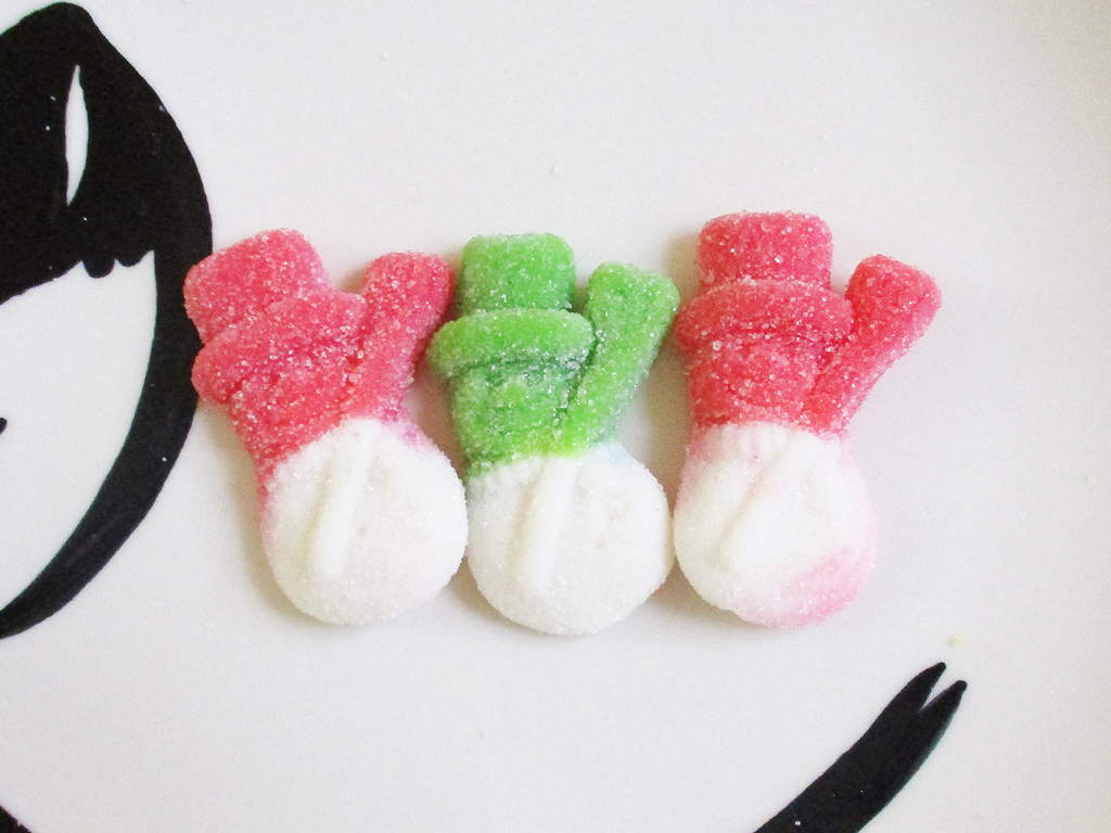 - Vidal Gummi Snowmen (Spain): I love gummies and these strawberry and apple shaped snowmen were so good! They were chewy with a sugar coating.