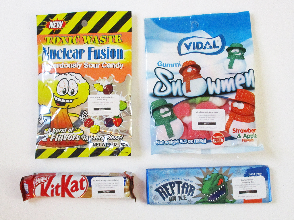 - Toxic Waste Nuclear Fusion Hazardously Sour Candy (Brazil): These have two flavors in every piece and remind me of the Warheads candies I used to have when I was a kid. I haven’t sampled them yet because my sour tolerance has changed drastically since then, but based on the packaging I’m going to guess they’re pretty potent.