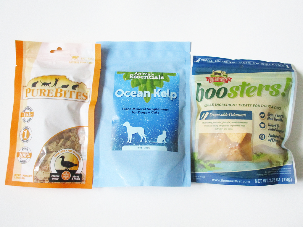 The box also included PureBites duck treats, Animal Essentials Ocean Kelp supplement, and Boo Boo’s Best Boosters! Calamari treats for dogs and cats. Tully is the most picky eater on Earth, especially when it comes to treats, so I wasn’t sure how these would go over. She sniffed at the PureBites and licked them a bit before losing interest and had no interest in the Calamari, and I haven’t tried the Ocean Kelp supplement yet (I think I’ll just sprinkle that one on her food). I think the PureBites are still a possibility, but I’ll pass the Calamari ones along to my brother because his cats love any and all treats.