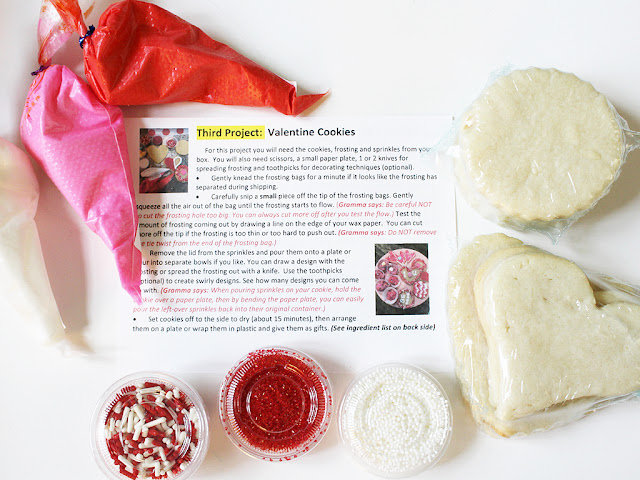 The third craft is always cookies. They’re pre-baked and shrink wrapped in plastic, but as with all cookies they should be made within a week of receiving your box so they’re at their freshest.