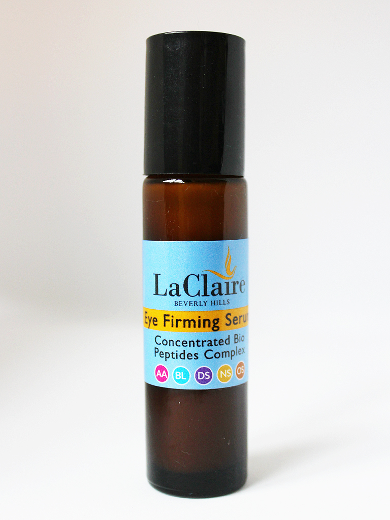 The Eye Firming Serum is great for all skin types and ages. It’s shown as a dropper bottle on the LaClaire Skincare website, but I received a rollerball tube. The serum contains caffeine and bio-peptides to decrease puffiness and increase collagen production. It also has vitamins C, E, A, and B3 to brighten and protect the under eye are, while Omega 3 oils help hydrate this tender skin.