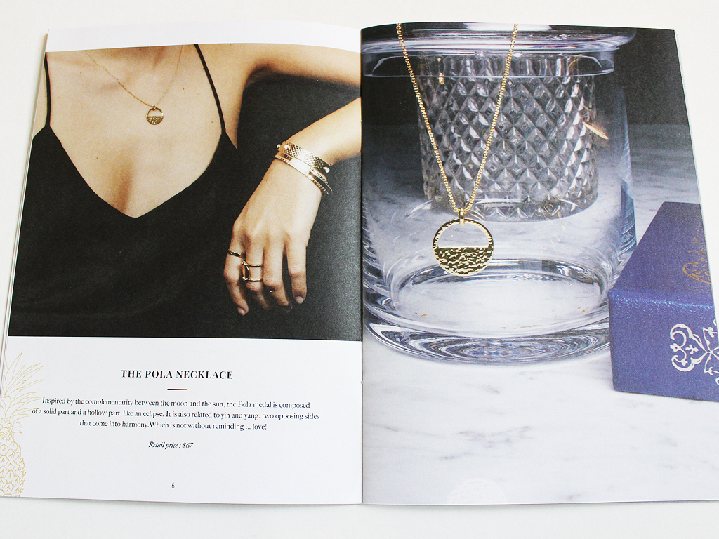 The February item was from the Les Particuliéres collection by Emma & Chloé and it is called the Pola necklace. The design is inspired by the sun and the moon and is comprised of a solid and hollow part, like an eclipse. I love this design! It’ll go great with any outfit.