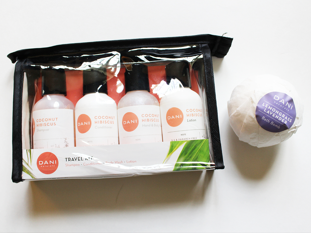 I was interested in DANI Naturals because of their commitment to creating organic and natural skincare, but I also was drawn to them because my name is Danielle. They sent me a Coconut Hibiscus travel set and Lemongrass Lavender bath bomb to try.
