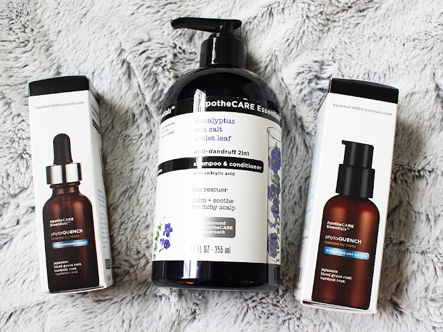 I have noticed a difference in my hair and skin after using the ApotheCARE Essentials products for about a month. My skin feels much more hydrated after using the phytoQUENCH products, and my hair is less oily with the THE RESCUER shampoo and conditioner!
