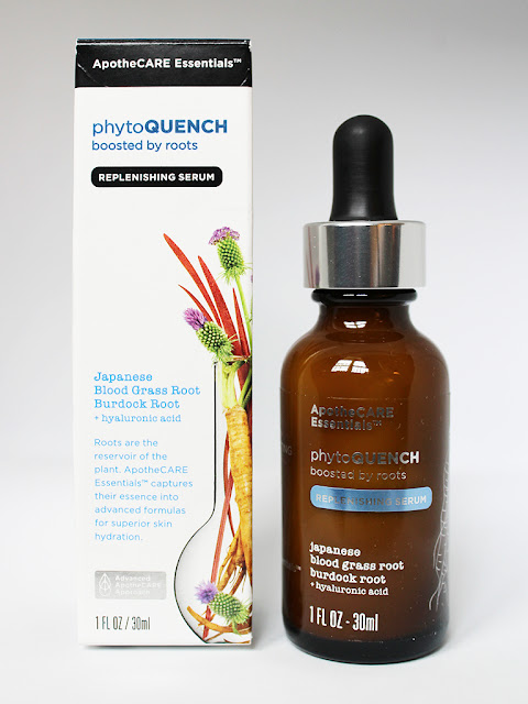 My favorite product of the three is the phytoQUENCH Replenishing Serum. It also contains Japanese blood glass and burdock root, along with hyaluronic acid, to help seal moisture into the skin. It’s incredibly light and smells so good! The dispenser is a dropper bottle, and just two or three drops are enough to cover my entire face and neck area. It glides on smoothly and feels great on my skin.