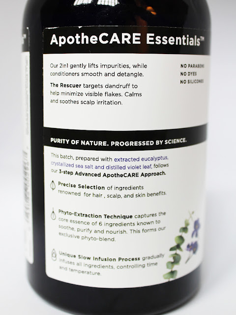 ApotheCARE Essentials use traditional apothecary wisdom and cutting edge modern science to create products that deliver optimal results. They use carefully selected ingredients that are known for their hair and skin benefits. They use a phyto-extraction technique to extract the core essentials of six plants: burdock (detox), white willow (soothing), rosemary (refreshing), ginkgo biloba (balancing), sage (purifying), and seabuckthron (revitalizing).