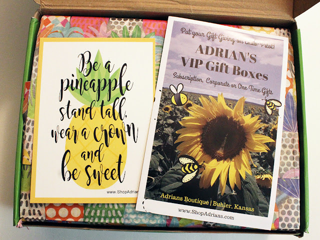 Adrian’s VIP Gift Box is from Adrian’s Boutique, which has shops in Buhler and Wichita, Kansas. They’re an award-winning midwest shop that features clothing, jewelry, gifts, gourmet, and holiday items. They’ve been recognized for outstanding customer service and voted Best Boutique and Favorite Gift Shop several times over the years. They were also the Reno County Small Business of the Year in 2016!