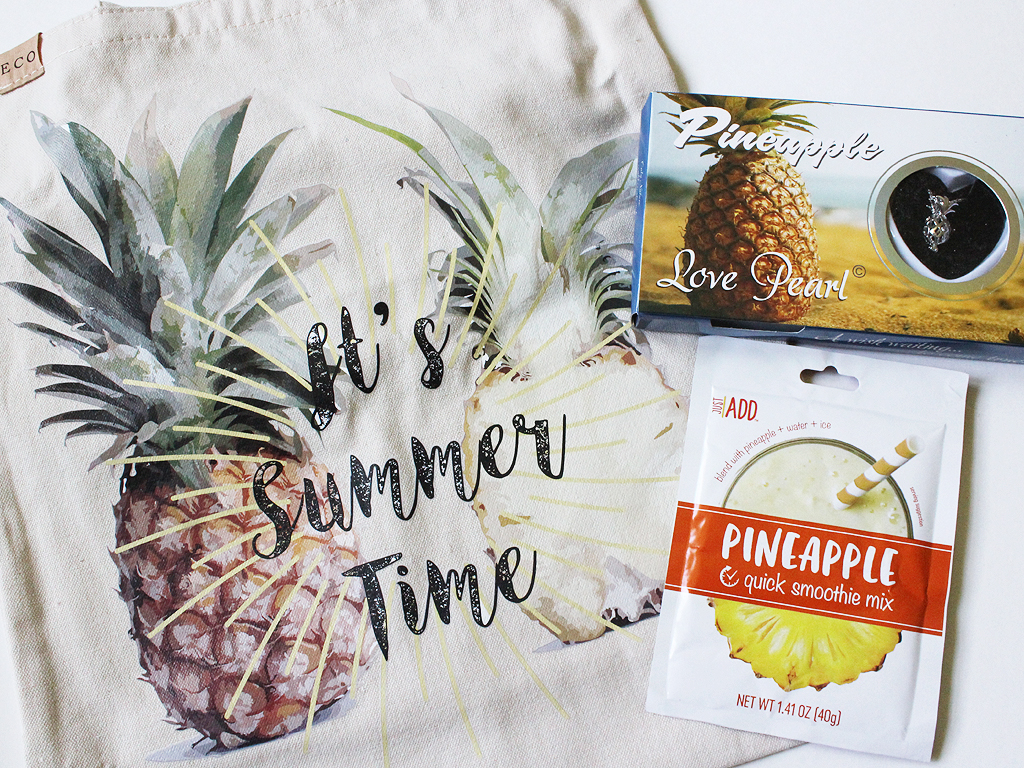 The June box had a “Stand Tall, Be Sweet” pineapple theme and had lots of fun items inside. There was no card with a list of all of the items, so I’ll do my best to describe them.