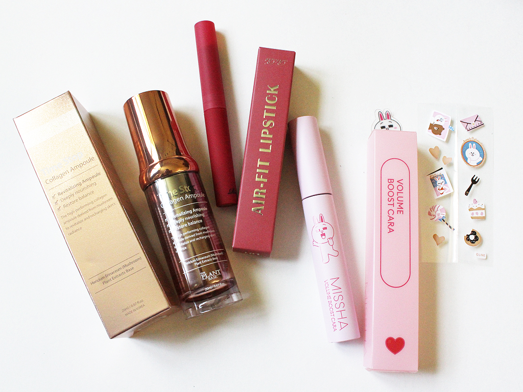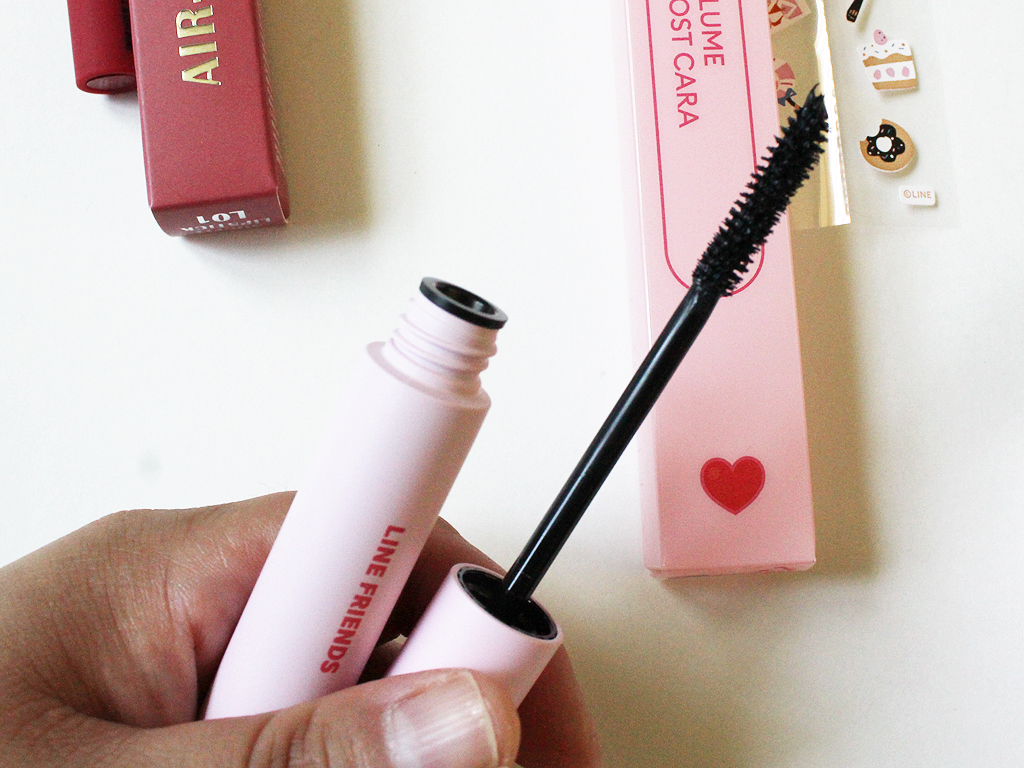 - Missha Volume Boost Cara ($9) – Subscribers will either receive the Volume Boost mascara like me or the Length Boost. These feature a cute character from the Line brand (I love the bunny on mine!) and had a small pack of stickers inside, too. The mascara itself is lightweight and didn’t clump and it made my lashes look thick and volumized!