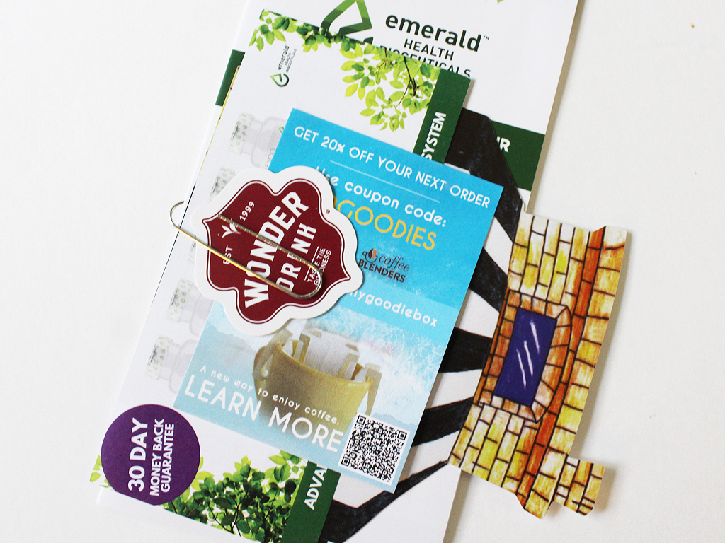 The boxes feature all types of products from different companies. There’s usually some coupons and leaflets about the companies included, too.