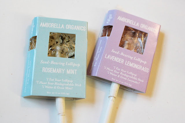 These two Seed-Bearing Lollipops from Amborella Organics are so unique! They’re Rosemary Mint and Lavender Lemongrass flavored, and once you finish them you can plant the biodegradable stick to grow mint and lavender plants!