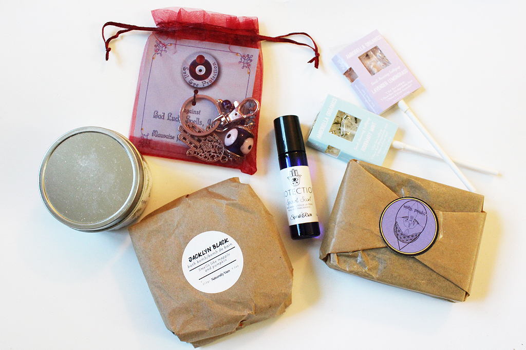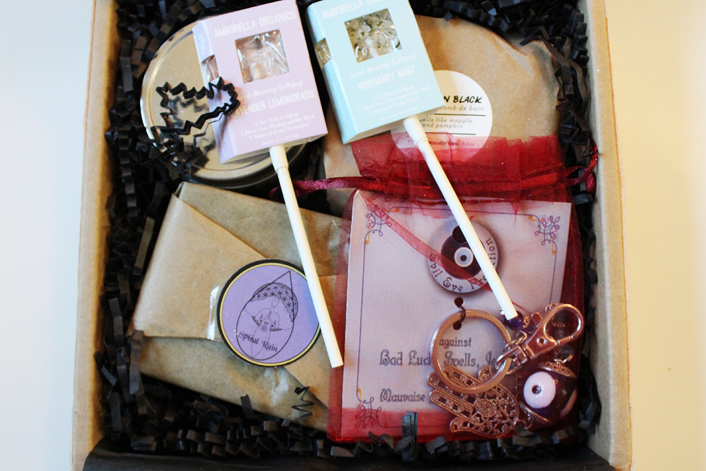 The other subscription box offered by Spiral Rain is the Witch Box. Both boxes cost $39.99 CAD and shipping to the U.S. is an additional $25.91 CAD. The total to ship to me in NY came out to $65.90 CAD/$49.82 USD. You can do a one-time purchase of either box, or subscribe and receive the box at $37.19 CAD after the first three months.