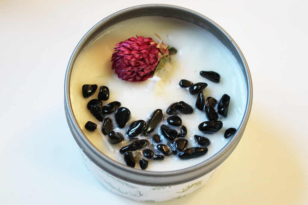 The Protection Candle is absolutely gorgeous! I love candles and this one is great for protecting your physical and mental space. It’s a soy wax candle scented with cedarwood and rosemary and contains amaranth and black tourmaline. Cedarwood is good for cleansing, purification, vitality, wisdom, and protection; rosemary is for cleansing, purification, vitality, wisdom, and protection; amaranth is for healing, summoning spirits, and healing broken hearts; and black tourmaline stones provide the ultimate form of protection by absorbing negativity and shielding your space from unwanted energy.