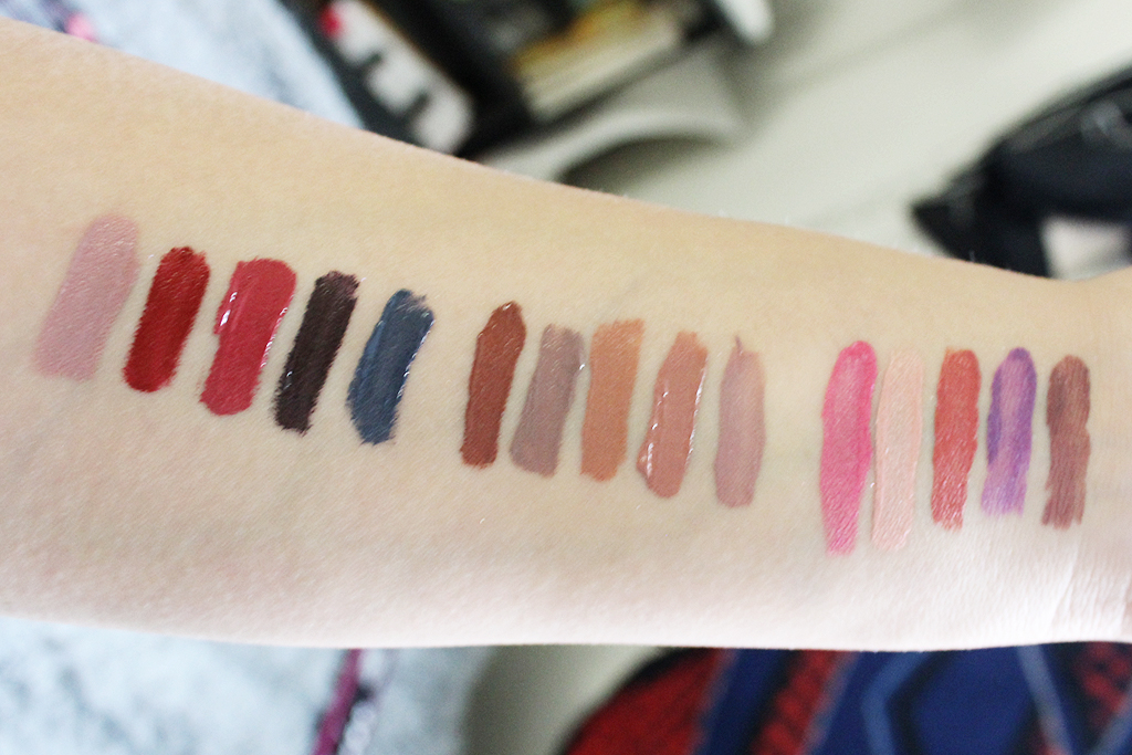 Here are swatches of the Matte, Urban Jungle, and Metallic lip kits in color order of how they appear in the photos above. You can see from the swatches that they are intensely pigmented! The formula is really smooth and was easy to apply with the doe-foot applicator in each bottle.