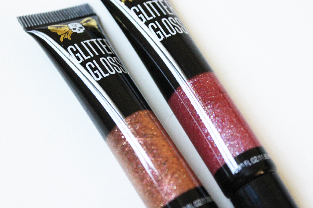 My favorite products were the Barefoot and Bankroll Glitter Glosses ($6.99 each). They are super shimmery with a smooth formula that doesn’t feel too sticky on the lips. They have a light berry scent and a sponge applicator tip (keep reading for swatches).