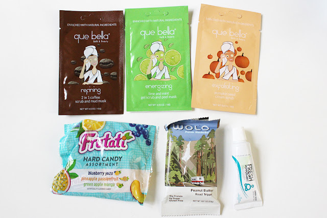 Bottom Line: The November Daily Goodie Box had 10 total products from eight brands, and a few full-sized items. I always enjoy the variety of products that are sampled. My favorites this month were the Que Bella masks and Frutati candies.