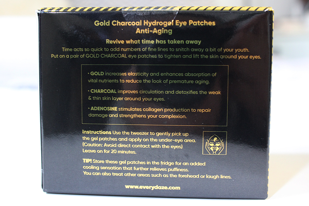 The eye patches are mini masks for the undereye area. They retail for $34 (currently listed at $28 on the Everydaze website) for 60 patches.