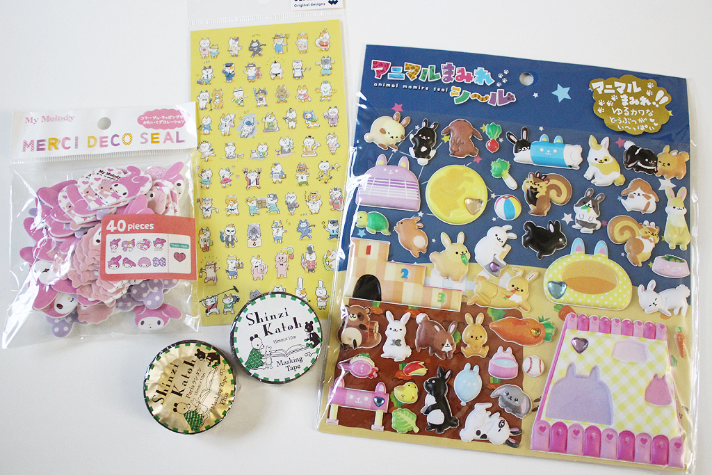 I received two packets of stickers, deco seals, and two sets of washi tape.