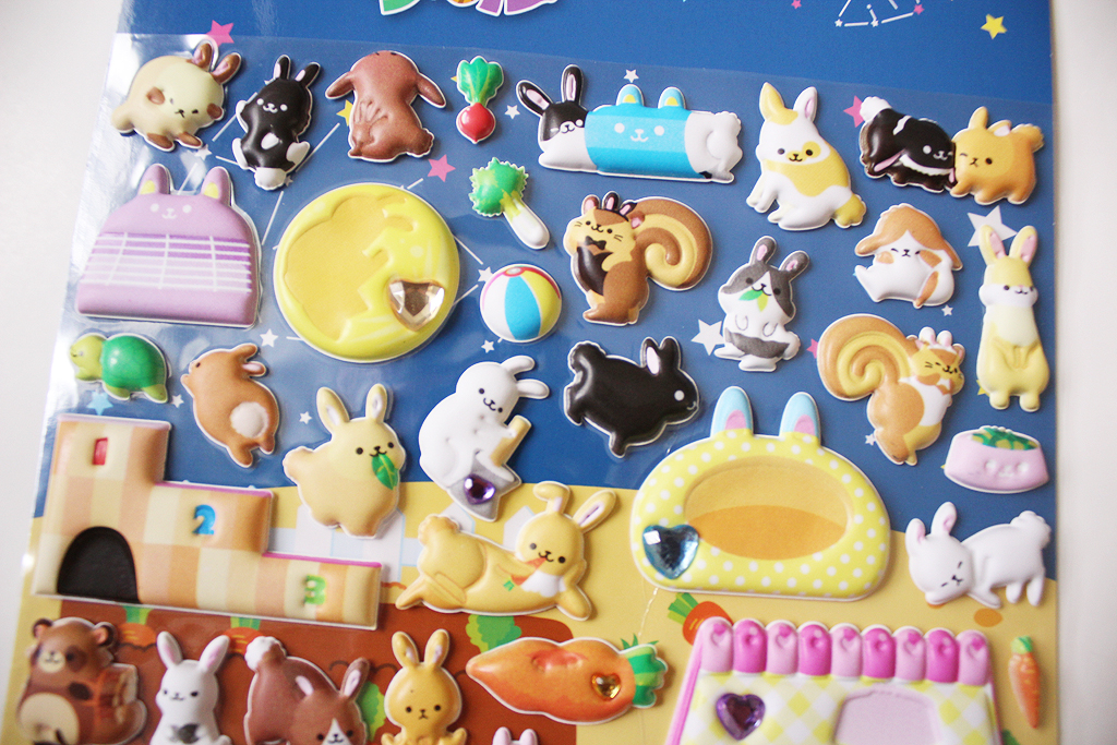 Rabbits are my other favorite animal, and modeS4u has a ton of rabbit products. The Cute Animal Rabbit Puffy Bed Stickers are colorful and have bunnies in different positions along with accent stickers like other animals and foods. These are so adorable!