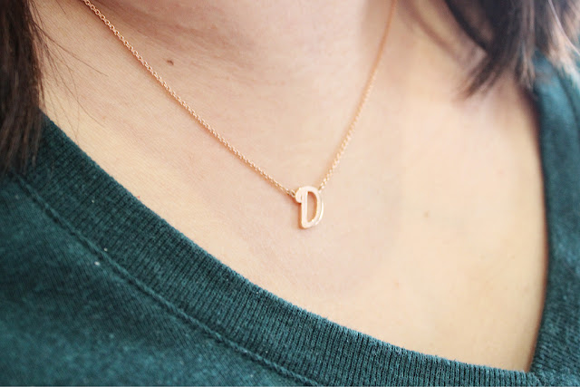 Noémie kindly offered me a piece to review and I chose the Custom Personalized Necklace in rose gold. The chain is adjustable to 16″ to 18″ and you can customize it with up to nine letters. I chose to use just my first initial for a simple style.