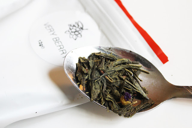 The Very Berry green tea has discreet sencha (a type of Japanese green tea that has a robust, grassy flavor) and fresh berries. It is grown in Shizuoka, in the central region of Japan. The climate is perfect for growing the finest tea green tea leaves. This had a great flavor that was light and refreshing.