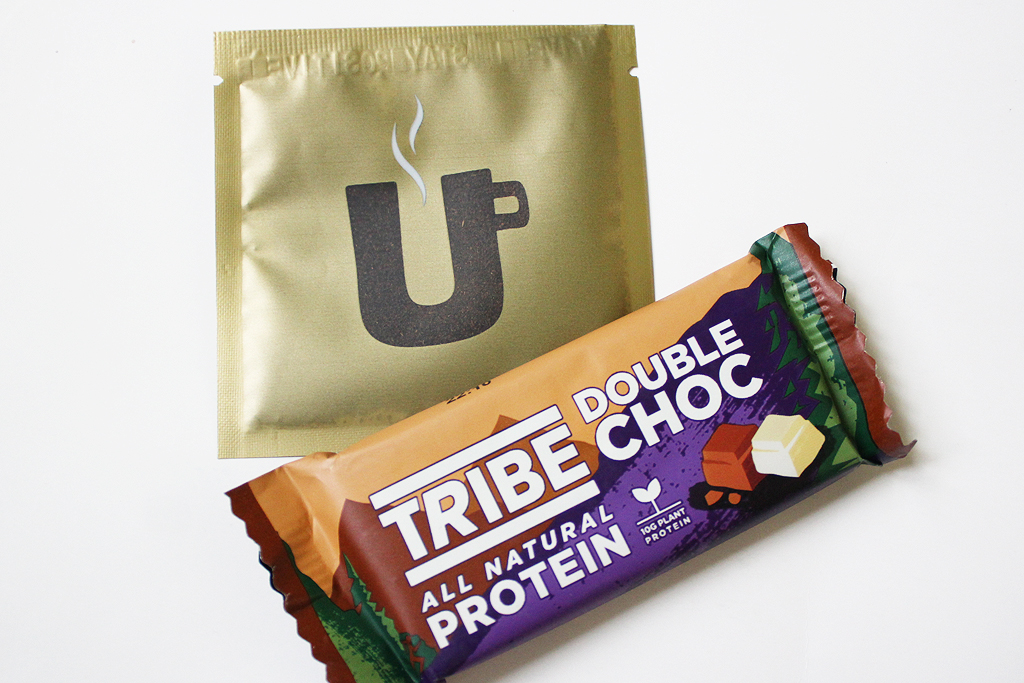 The box also contained a smaller sample of unlabeled tea and a Tribe Double Choc All Natural Protein bar. I haven’t tried either yet, but they were fun extras to receive.