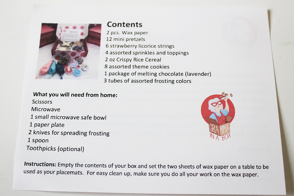 Each project has its own instruction card that also lists any possible allergens for the snacks. You can also visit the Gramma in a Box YouTube channel for follow along videos (link at the end of this post).