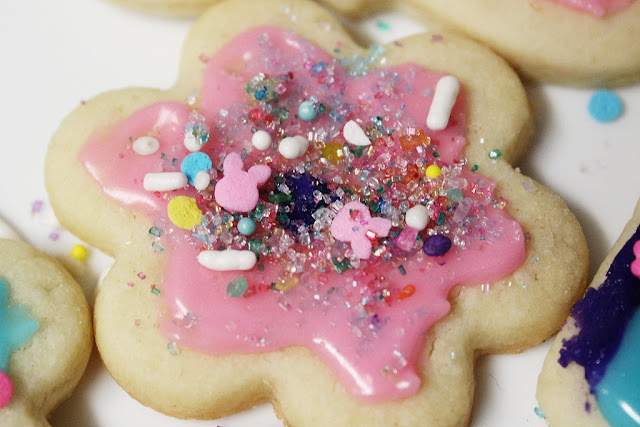 These cookies are so good and I always look forward to decorating them. They’re a soft butter/sugar cookie that is just delicious. I also really loved the sprinkle mix pictured above, especially the cute little bunny shaped sprinkles!