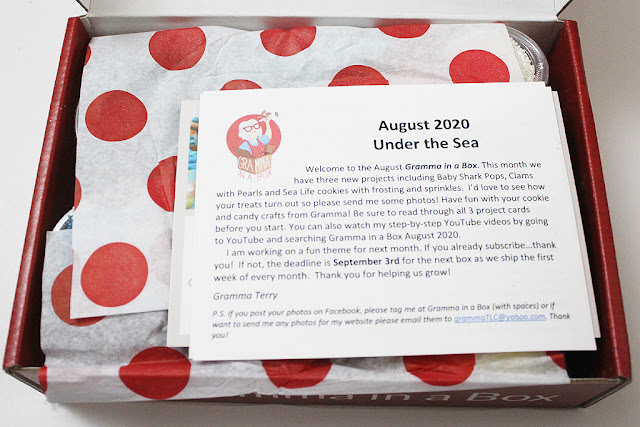 The August theme was “Under the Sea.” The box always contains three crafts with enough supplies to make 15 to 20 individual treats. Everything you need is inside as far as the ingredients go, you’ll just have to supply basics like a bowl and spoon for mixing.