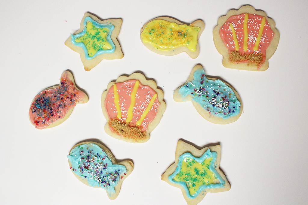 I liked the simple star, fish, and shell shapes because they were easier for me to frost and decorate. The cookies are a delicious butter/shortbread and are a big hit with my family.