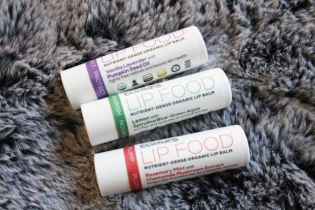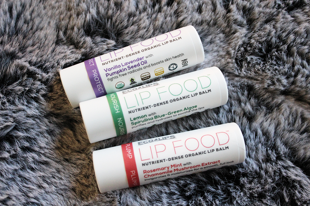 The LIP FOOD lip balms are available in Nourish, Pump, and Protect. Nourish is made with Lemon with spirulina blue-green algae, Plump is Rosemary Mint with chamomile mushroom extract, and Protect is Vanilla Lavnder with pumpkin seed oil.