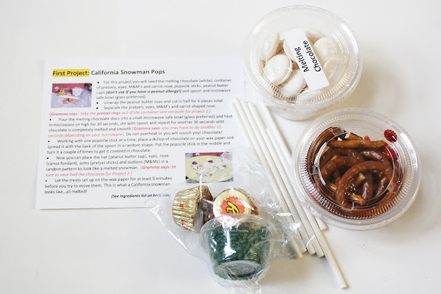 The first craft was my favorite this month, the California Snowman Pops. Gramma in a Box always has the most creative crafts, and this one is no exception!