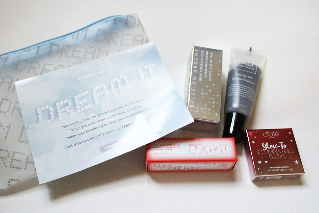 - Item Beauty Air Hug Concealer in Light Warm: This was an early release item that Ipsy subscribers got to try before the general public. I wanted to purchase a full sized version because I liked it so well, only to see that it hadn’t been released yet. It’s TikTok-er Addison Rae’s beauty brand (I don’t know who she is — I’m old). Most importantly, the concealer has a smooth formula and a larger applicator, making it easier to apply over my blemishes.