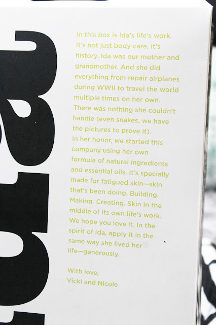 Ida Body Care was created by a mother and daughter team in honor of their mother and grandmother. Their products are cruelty-free and vegan and from an all-woman team.