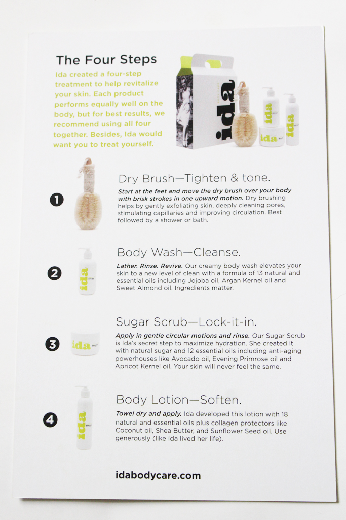 Bottom Line: The Ida Body Care Four Step set would make an excellent Valentine’s Day gift for your partner or for yourself! All four products made me feel like I had a spa day at home, and I loved the refreshing citrus scent during the doldrums of winter.