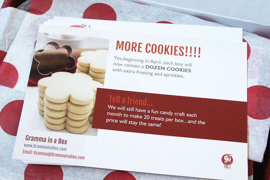 The box usually comes with enough supplies to create 15 to 20 individual treats, but this month’s info card announced that, starting in April, subscribers will now receive a dozen cookies in each box!