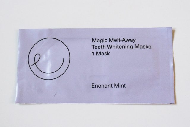 What I like best about these teeth whitening masks is the packaging. Although the outer packet still needs to be discarded (not much you can do to help that), I like that there is less waste with the strip itself. All you have to do is wet your teeth with your tongue and then apply. The mask adheres to your teeth and then melts away. I left these on for 20 minutes and rinsed with water and brushed away excess mask, just like I would with other strips.