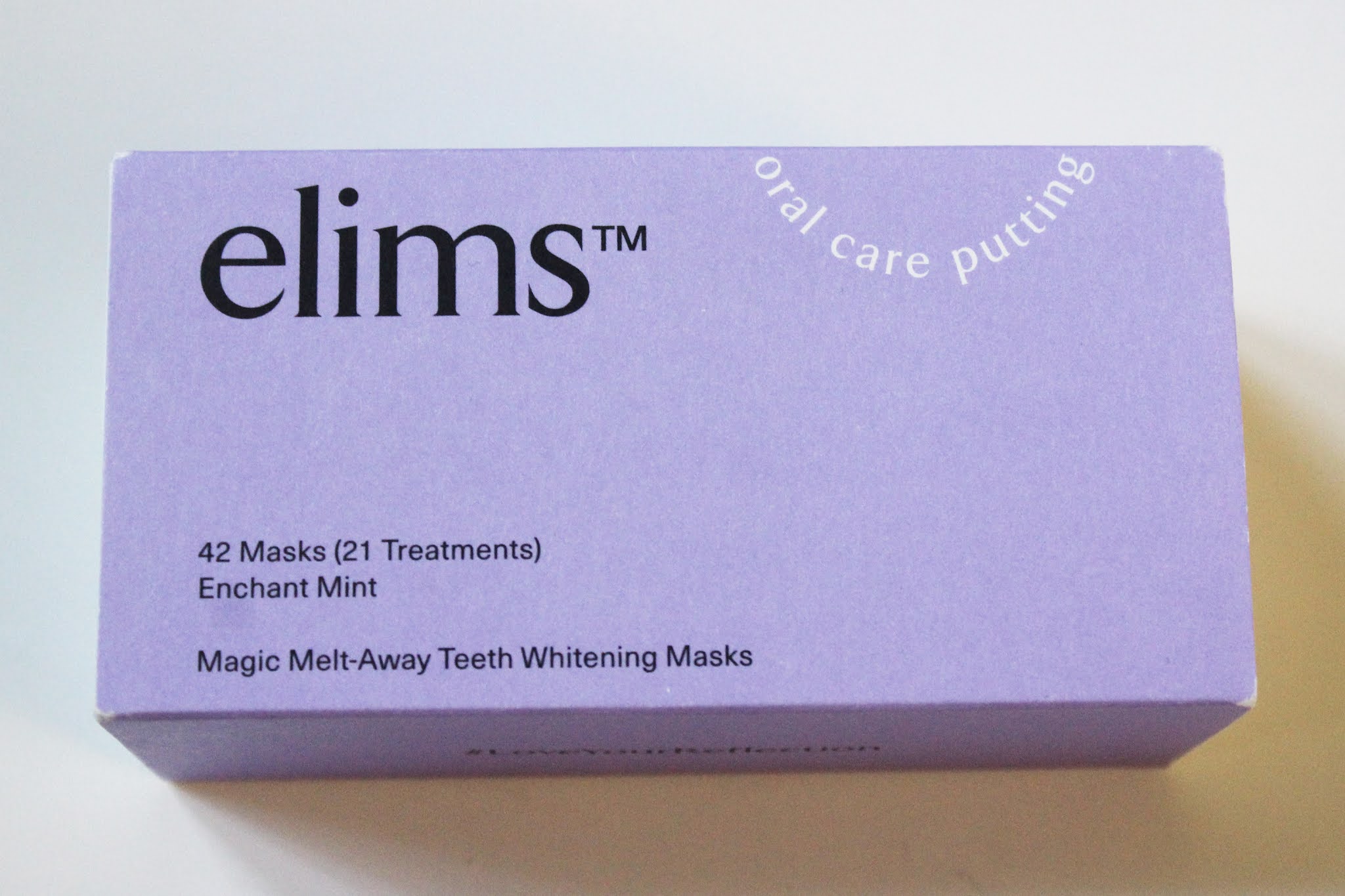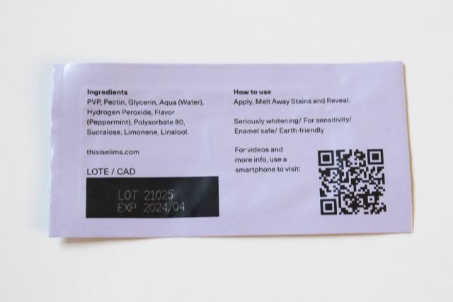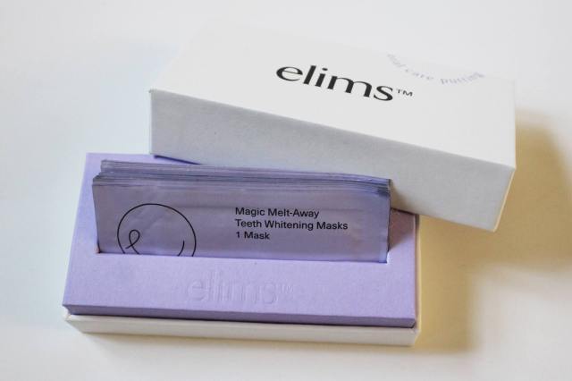Elims has toothpaste and whitening products. I tried their Magic Melt-Away Teeth Whitening Masks, which brighten your teeth up to seven shades lighter in 14 days. The masks are vegan and melt away on your teeth when activated.