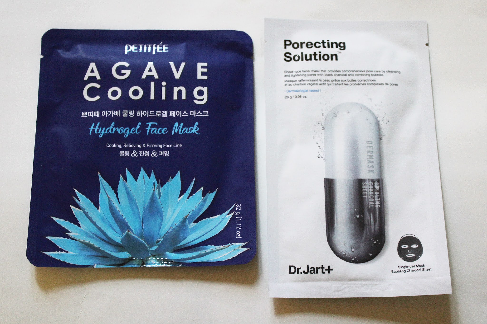 The Petitfee Agave Cooling Hydrogel Face Mask is a cooling hydrogel infused with agave and blueberry to nourish and calm skin. It comes in two pieces (one that goes on your forehead/nose and one on the chin) like most hydrogel masks and is great for hydration.