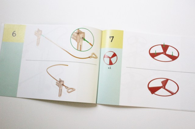 The two aircraft projects were a boomerang-style launcher and a spinning top projectile. They were easy to put together (from an adult standpoint), and the booklet includes information for kids about the science behind how/why these gadgets work. They do a great job of breaking it down into terms children will understand, and the toys are, of course, really fun to play with!