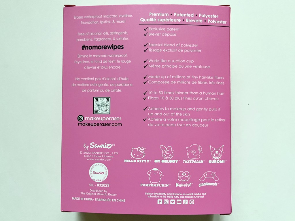 Makeup Eraser towels are available in the original 15.5″ x 7.5″ size and the smaller sets like this Hello Kitty one that are 5″ x 4″. They also have other branded collections from Nickelodeon, Disney, and more.