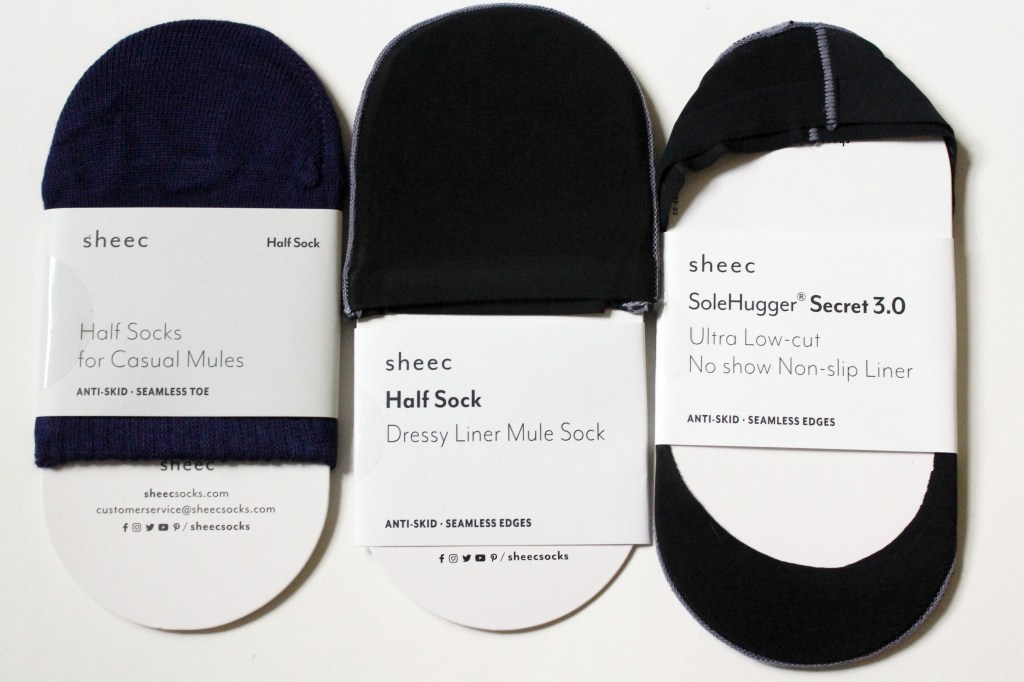 I received a variety of socks to try from the Women’s collection that were appropriate for my shoe size (they are not one-size-fits all). From left to right in the above photos, there are the: Half Socks for Casual Mules, Half Sock for Dressy Liner Mules, SoleHugger Secret 3.0 Ultra Low-cut No-show Non-slip Liner, No Show Liners for Dressy Shoes (both brown pairs), Women’s Fleece-Lined, Women’s Merino Wool, and two SockShion Foot Cushions.
