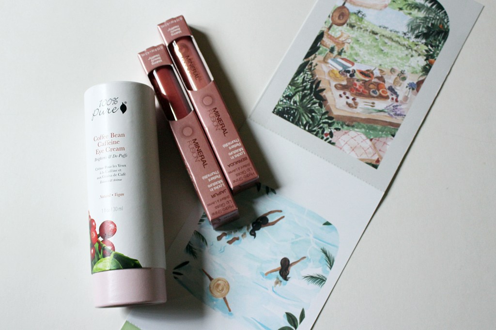 100% Pure Coffee Bean Caffeine Eye Cream: I’ve used 100% Pure’s products before and they are wonderful. They’re vegan and cruelty free, with no harsh chemicals or toxins. This eye cream depuffs and helps boost circulation to lessen dark spots and under-eye bags.