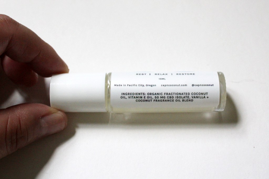 I usually don’t use rollerballs because I don’t think they dispense enough fragrance, but in this case, I think it makes sense due to the CBD addition (much easier for targeted application). The fragrance is very light, so if you like a personal fragrance that doesn’t overwhelm the whole room, this one is a great choice. The coconut and vanilla scent is beautiful.