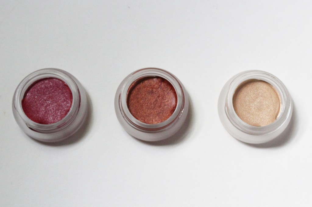 The Probiotic Lip and Cheek Colour is available in three shades, from left to right: Rosey Pink, Golden Bronze, and Glistening Gold. They are naturally pigmented and moisturizing and can be used as a cream blush, lip gloss, or highlighter.