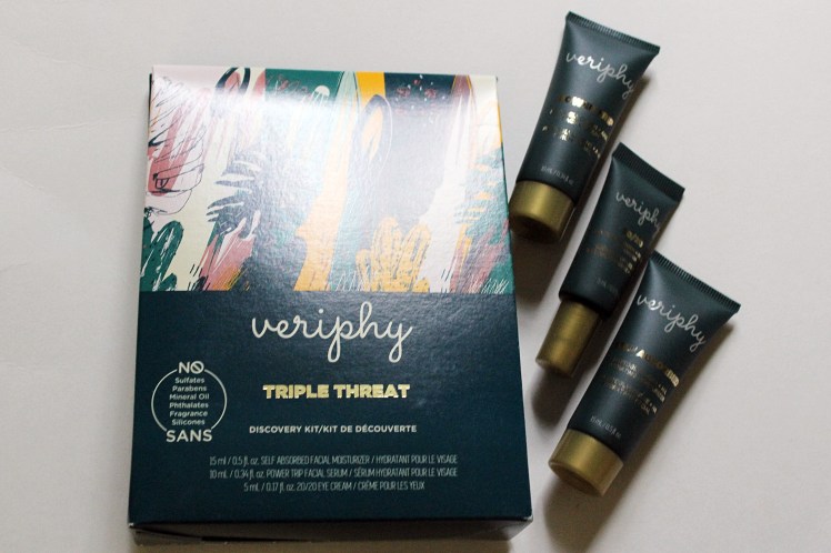 Veriphy Skincare also has a Triple Threat Discovery Kit that’s perfect for travel or trying everything out before committing to a full-sized bottle. It has a .5 oz Self Absorbed Facial Moisturizer, .3 oz Power Trip Facial Serum, and .17 oz 20/20 Eye Cream. These are small enough to pass through TSA, so I’ll be taking it with me on my upcoming trip to San Francisco.
