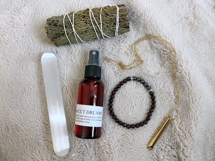 Sweet Dreams Sleep Clearing Spray: This spray can be used on your pillow and/or sheets to surround yourself with a calming scent to help you drift off to sleep.