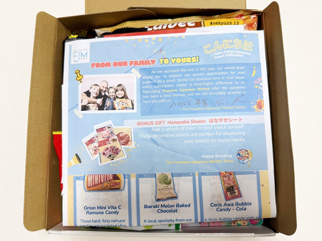 Freedom Japanese Market is a small, family-owned business in rural Japan that sends a selection of savory and sweet snacks each month.