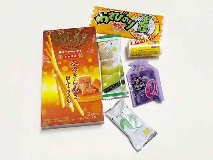 - Pocky Winter Sparkle Golden Butter Flavor: I think most people know Pocky, right? They’re a wafer stick covered in a variety of different types of flavors, but this flavor was completely new to me. It’s made during the winter only and has salted caramel with golden burnt butter flavors. It was SO good, and now I want more.